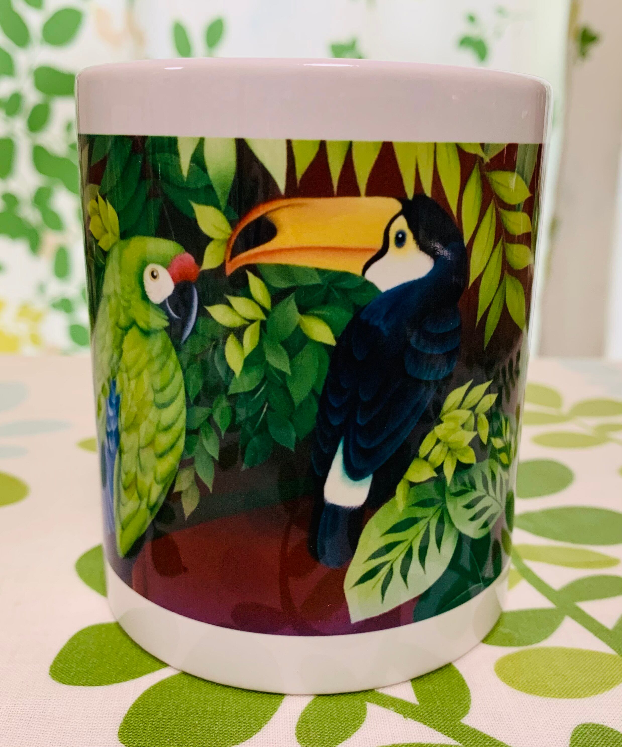 オオハシ(ramphastidae)とミドリコンゴウインコ(ara militaris)が中央に描かれています
